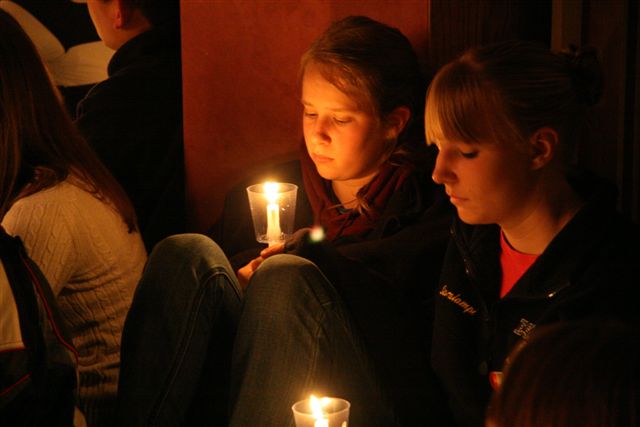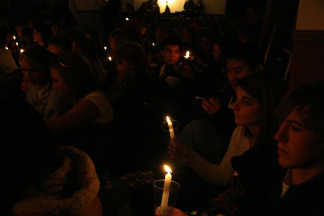 December 1, 2008: With special thanks to both the Pine Knot of Cloquet, MN and Nelson Funeral Care, here's some photos of Jordan's Memorial and Candlelight Vigil. After sharing stories about Jordan, the family walked through the crowd and lit candles and we all sat in silence, each with their own thoughts and reflections as Jordan lay at the front of the hall. Jordan's candlelight vigil pictures, November 19, 2008,  at 8PM (300 people attended):