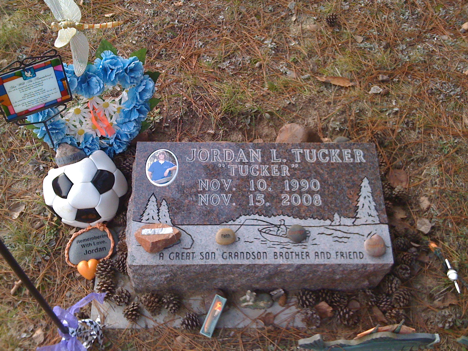 His obituary: Jordan L. Tucker, age 18 years and 5 days, of Cloquet, passed away unexpectedly in his sleep early Saturday, November 15, 2008. He was born November 10, 1990 in Duluth. Jordan attended Churchill Elementary School, Cloquet Middle School, and would have graduated next spring from Esko High School. He was an honor student with a passion for fishing and hunting especially around Lake Vermilion where he had many “secret” walleye spots. Jordan loved soccer and was named all-conferences goalie and played in the all star game this fall. He also was an excellent youth soccer referee.
