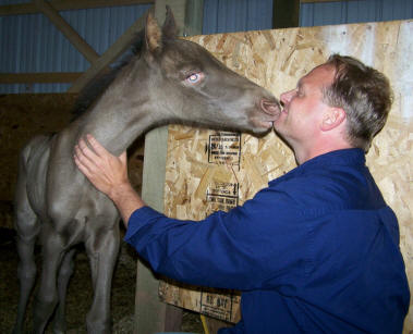 is a 'lap foal' trying to be as close to you as he can giving plenty of kisses. (click
